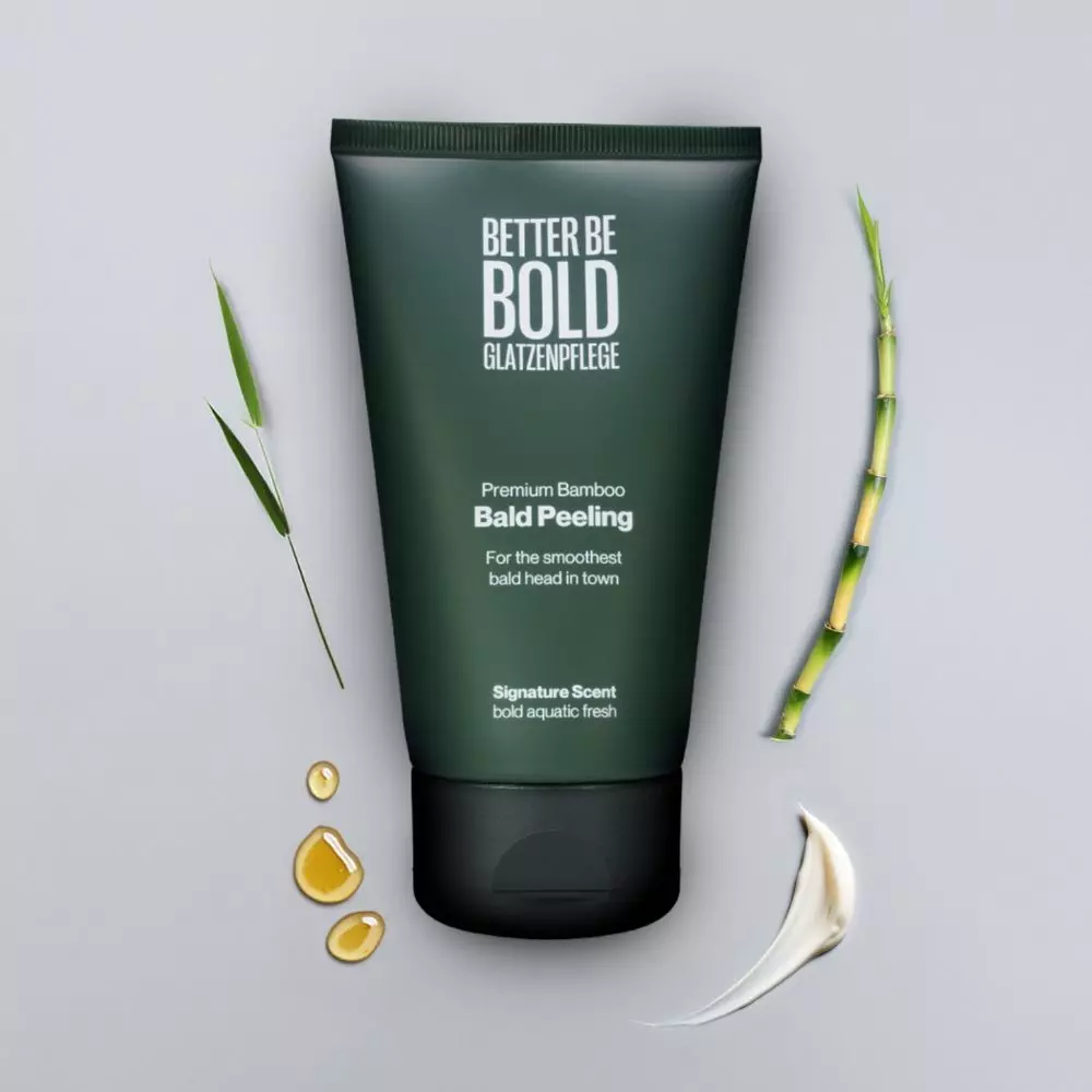 Bambusový peeling na holou hlavu - Better Be Bold je profesionální kosmetický přípravek vytvořený s ohledem na jedinečné potřeby pokožky bez vlasů, aby jí zajistil dokonalou hladkost a žádoucí vzhled bez lesku. Mimořádně jemná a měkká formule bambusového peelingu na holou hlavu - Better Be Bold účinně odstraňuje odumřelé buňky pokožky, aniž by způsobovala podráždění. Bohaté složení s přírodními oleji poskytuje hloubkovou péči a okamžité zklidnění.