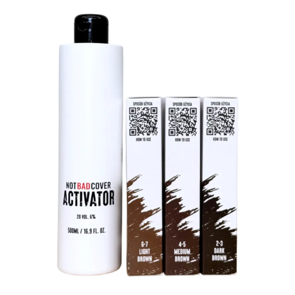 Barva na vlasy a vousy 4-5 Středně hnědá - Not Bad Cover je profesionální produkt určený pro barvení vlasů, vousů a kníru v odstínu středně hnědé. Balení obsahuje 3 dávky barvy po 60 ml, které je nutné používat výhradně v kombinaci s aktivátorem Not Bad Cover Activator. Díky tomu dosáhnete trvalého a rovnoměrného efektu barvení, který podtrhne přirozený vzhled a přidá charakter vaší úpravě. Barva na vlasy a vousy 4-5 Středně hnědá - Not Bad Cover byla vyvinuta pro muže, kteří si cení kvality a pohodlí používání.