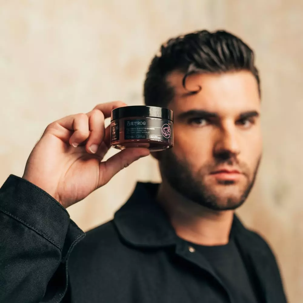 Gel na vlasy Wet Effect Fixing Gel - Bullfrog je moderní kosmetický produkt, který poskytuje lehkou fixaci účesu, zároveň pečuje o kondici vlasů a zajišťuje přirozený efekt, jako surfař na vlně. Jeho gelová formule je vytvořena z 88 % přírodních složek, což zajišťuje jemnost a bezpečnost pro vlasy. Gel na vlasy Wet Effect Fixing Gel - Bullfrog dává vlasům lesklý, hladký efekt, aniž by zanechával pocit tvrdosti nebo usazenin. Díky obsahu glycerinu, panthenolu a extraktu z mořských řas, produkt vlasy hydratuje a chrání je před negativními vlivy vnějších faktorů.