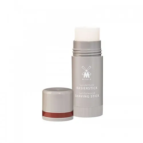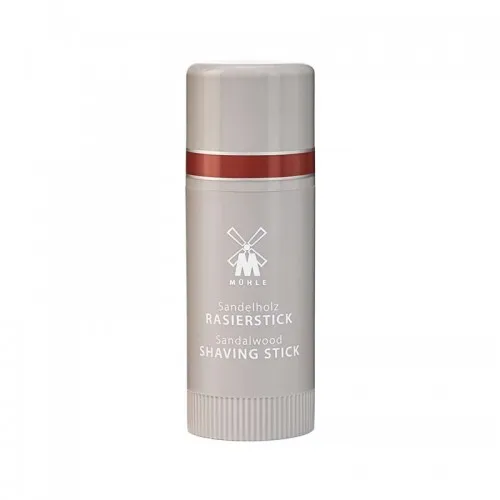 Mýdlo na holení ve formě tyčinky Sandalwood - Mühle se nanáší přímo na oblast, která má být oholena, a poté kruhovými pohyby vlhkého štětce vytvoříte pěnu a přejdete k použití břitvy. Pokud máte rádi proces tradičního mokrého holení a chcete jej zjednodušit, zejména na cestách nebo v jiných omezených podmínkách, tato praktická tyčinka bude skvělým řešením.