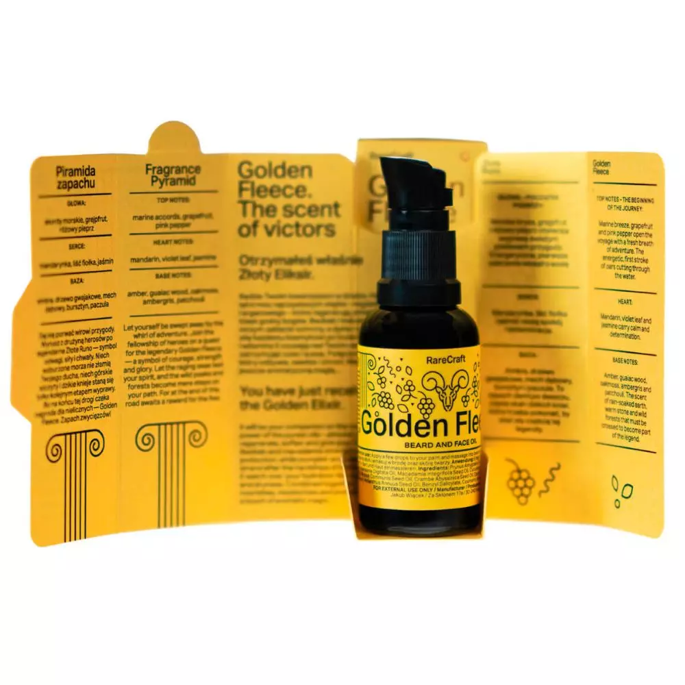 Olej na vousy Golden Fleece - Zlatá Vlna - RareCraft je kosmetika pro péči o vousy, jejíž výjimečná vůně je inspirována mýtickou výpravou Argonautů. Kompozice obsahuje mořské tóny, které se prolínají s citrusy, květinami a pryskyřičnými a lesními aromaty. Tato kombinace vás bude provázet, jak se bude vyvíjet během dne po nanesení oleje na vousy Golden Fleece - Zlatá Vlna - RareCraft na vousy.