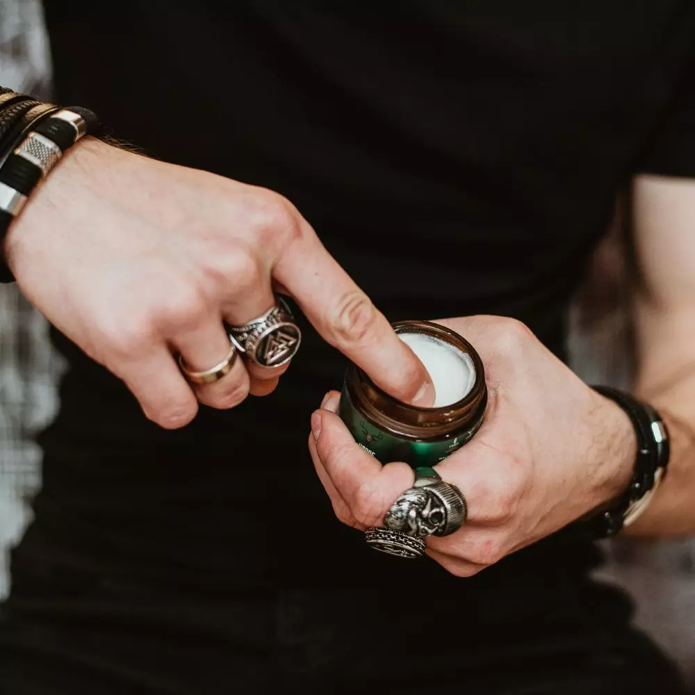 Malé množství balzámu naberte prstem, rozehřejte v dlaních a rozetřete po vousích, upravte je podle svého uvážení.