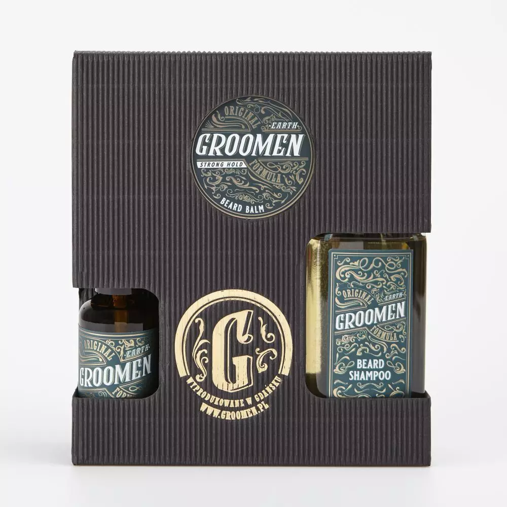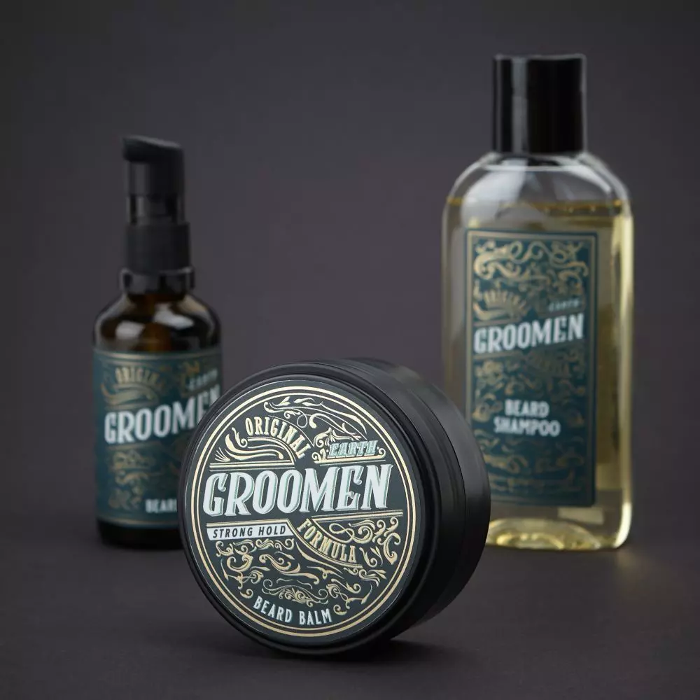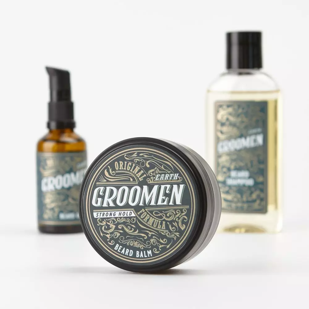 Sada na péči o vousy Earth Strong Hold - Groomen zahrnuje šampon, balzám a olej na vousy, tedy kompletní sadu kosmetiky potřebné pro každodenní péči o vousy. Všechny tři produkty spojuje kompozice vůně skládající se z tónů bergamotu, levandule, heřmánku, skořice, citronu a limetky. Díky tomu můžeš začít budovat příjemnou vůni již při čištění a dodat jí finální efekt během stylingu a ochrany vousů pomocí balzámu na vousy Earth Strong Hold s pevným chvatem.